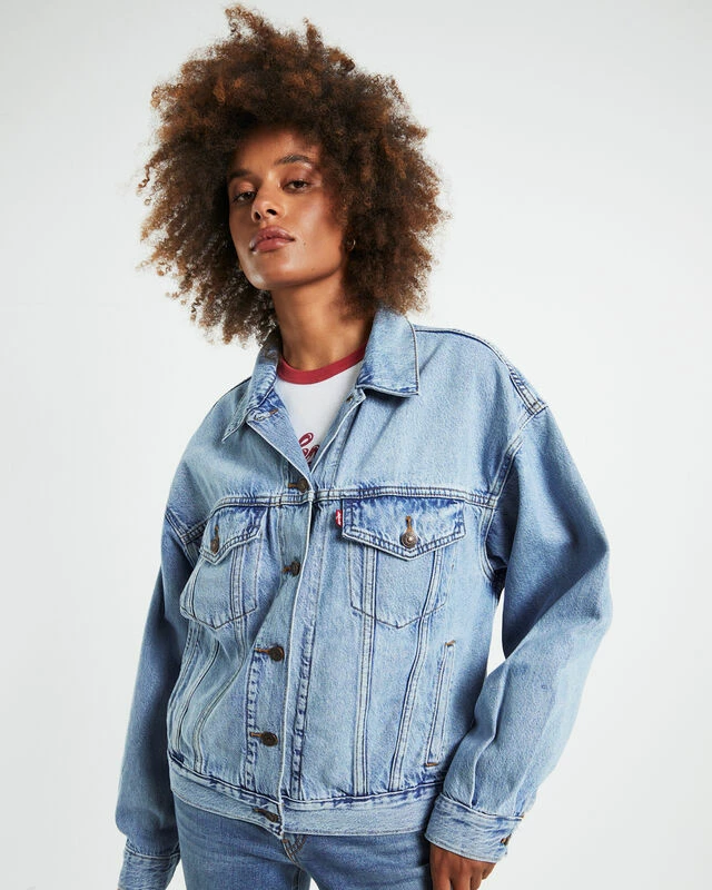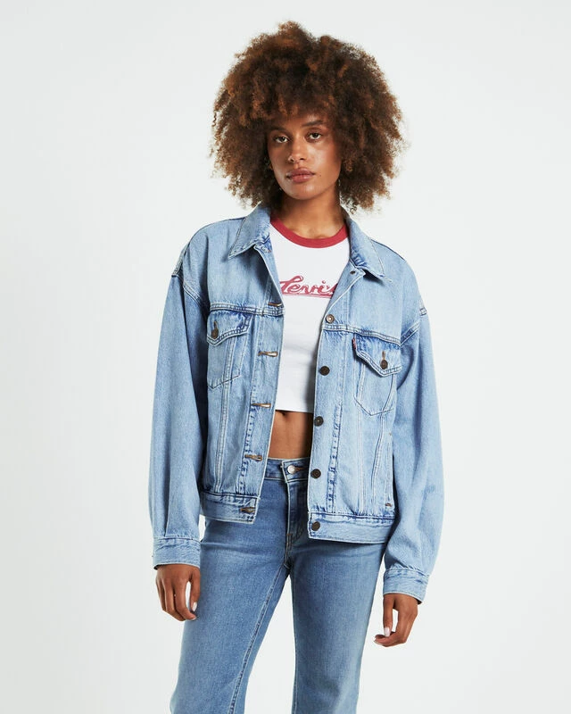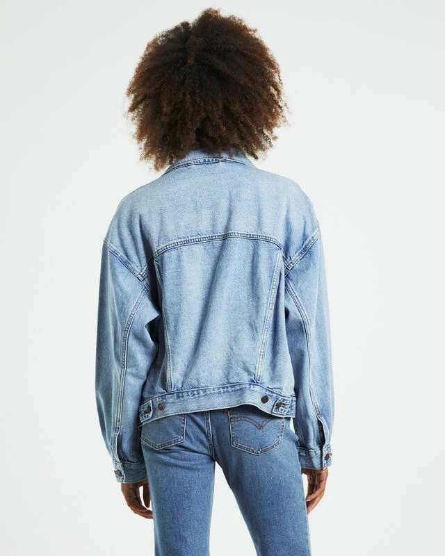 The 90s Trucker Denim Jacket by Levis comes in a Light The Way blue wash. The jacket has a relaxed fit and is designed with a button-up front, collared neckline, dual chest poockets, slip side pockets and woven brand tag.