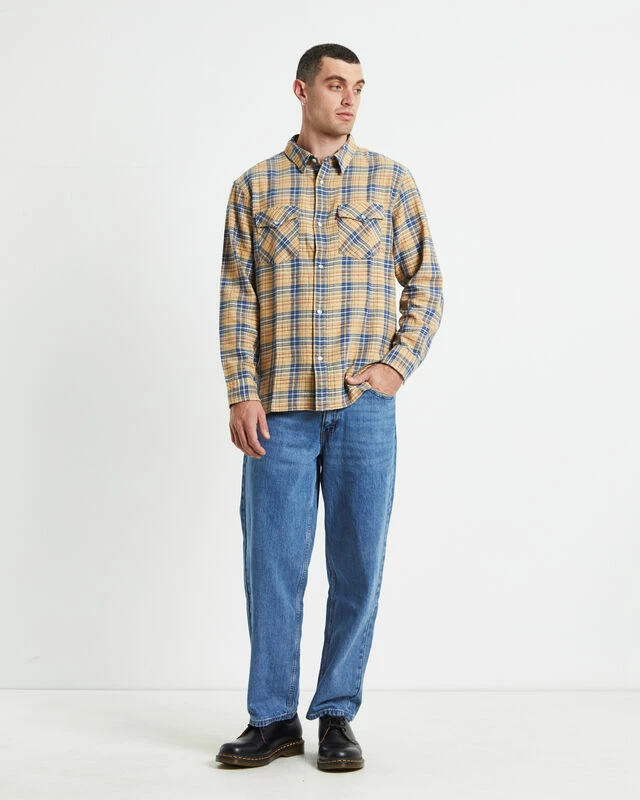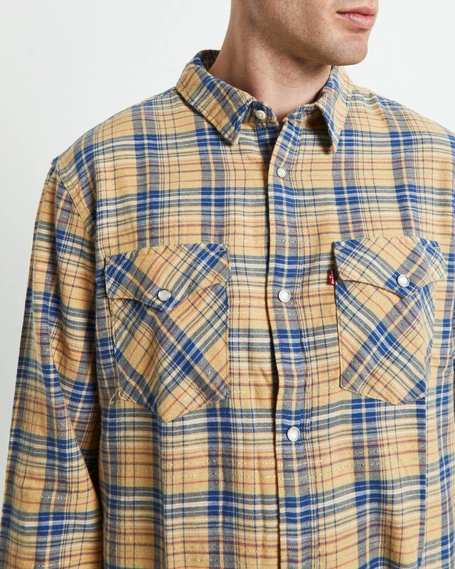 The Relaxed Western Krishan Plaid Shirt by Levi’s comes in a black and blue colourway. Featuring a plaid print, regular fit, long sleeves, pointed collar neckline, dual chest pockets and snap closure at cuff. Pair this with a pair of baggy blue jeans and pair of high top converse to complete the look.