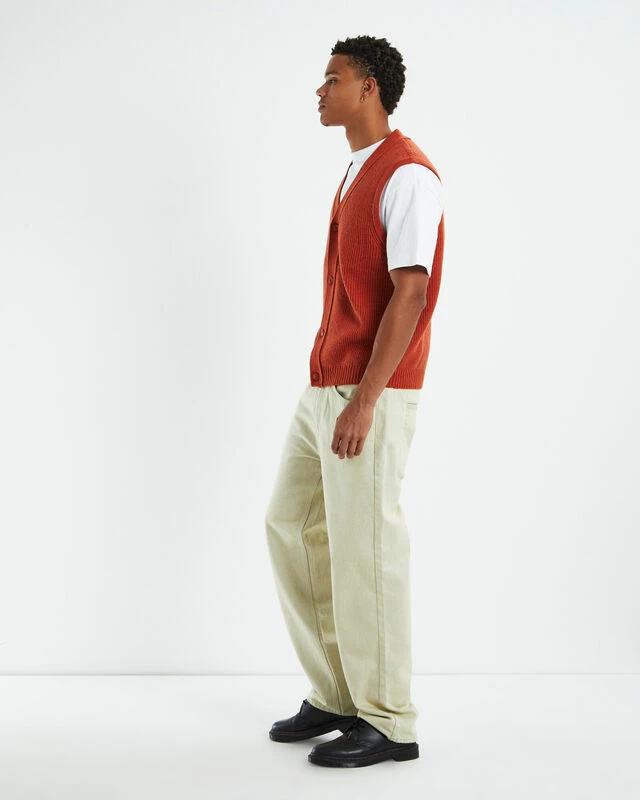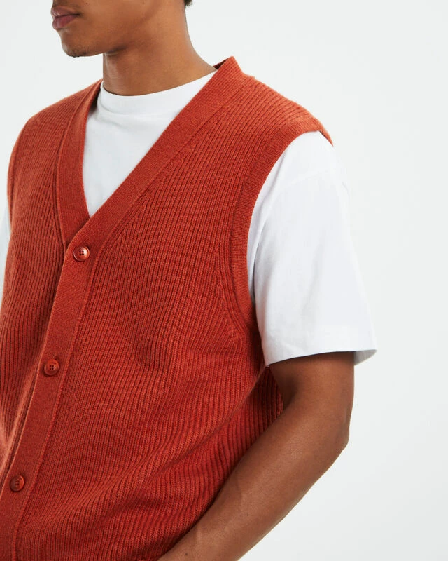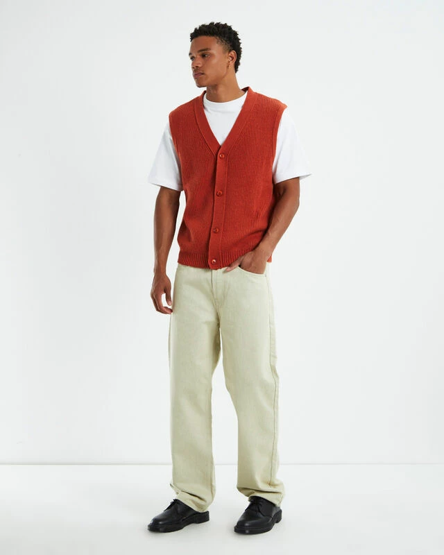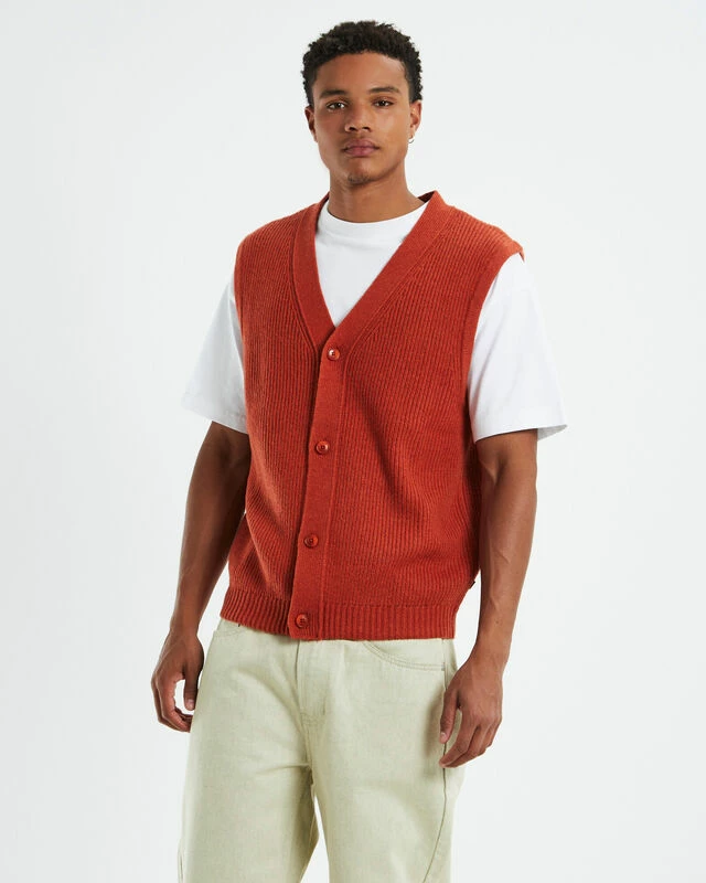 The Rincon Button Down Vest by Levi’s is the perfect layering for your winter wardrobe. This style comes in an orange olourway and features a button down front, V neck line and sleeveless design. Layer it over a white t-shirt and a pair of bagg black jeans to complete the look.