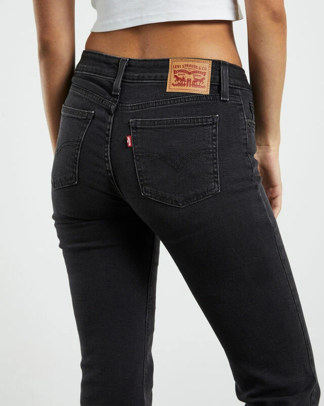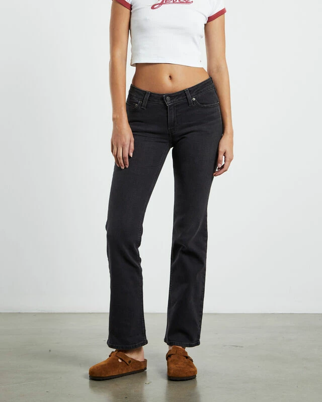 The Super Low Boot Jeans by Levi’s comes in the signature First or Last Black wash. The jeans are designed with a super low rise, boot cut leg, zip-fly with button closure, 5-pocket styling and a signature leather brand patch at the reverse.