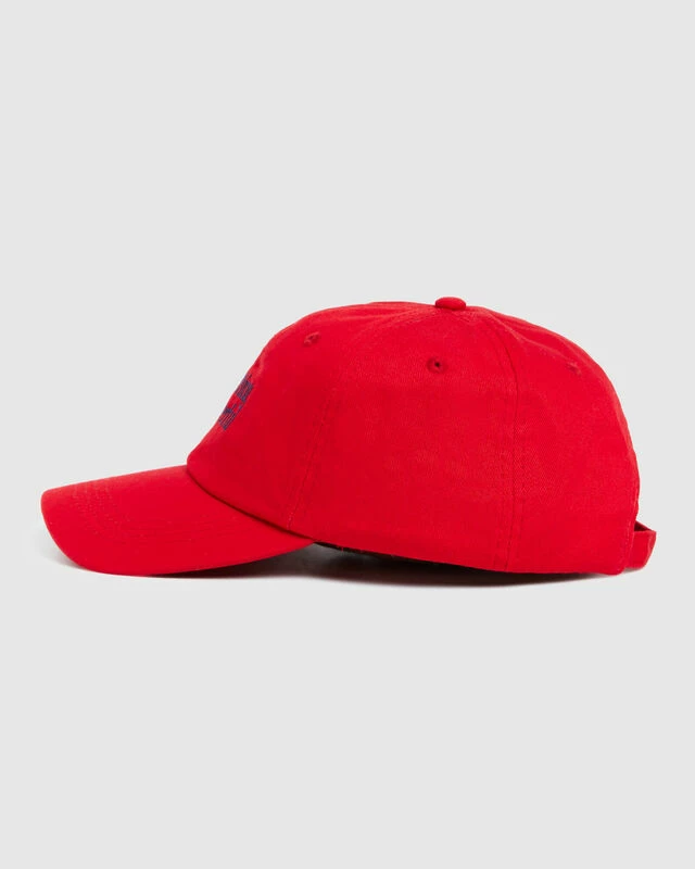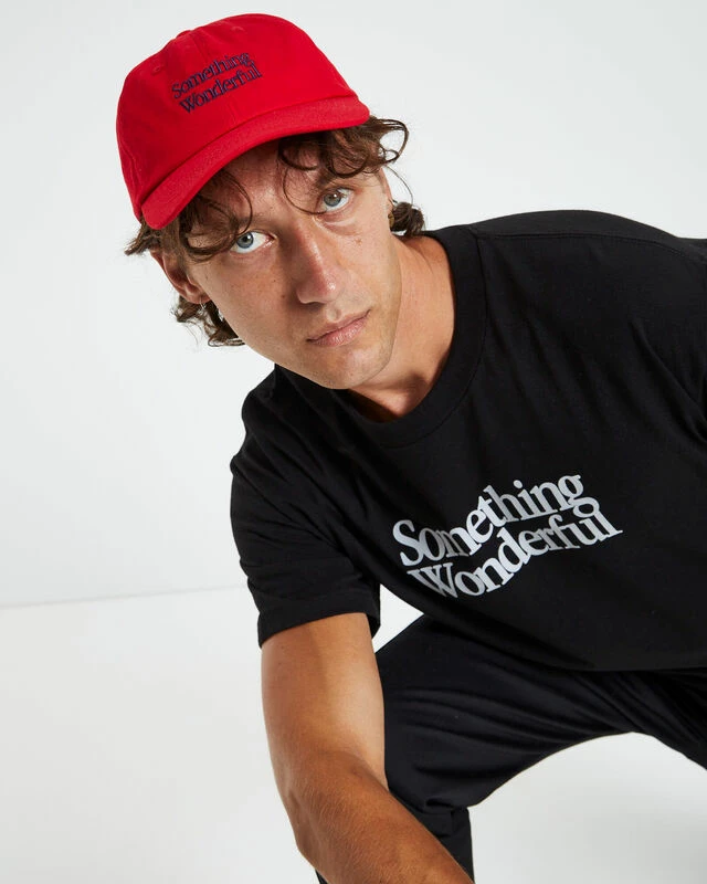The Logo Dad Cap by Something Wonderful comes in a red colourway with premium logo embroidery at centre front. Featuring a regular fit, curved brim, tonal stitching, regular fit, six panel construction and an adjustable fastening strap at back.