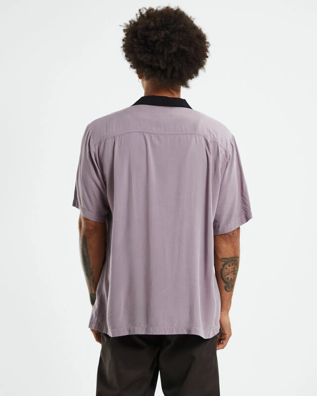The Marilyn Absent Short Sleeve Shirt by Former is a rose pink colourway with a black graphic print. The shirt is a relaxed fit with a collared neckline and button-up front. Throw over a white tee and black jeans for a laid back grunge look.