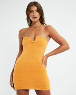 The Martha Tube Dress by Subtitled comes in an orange colourway. Designed in a stretch knit fabrication this style offers a fitted silhouette, strapless design, mini length, mini scoop neckline and interior lining. Style back with heels and gold accessories to complete the style.