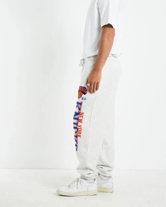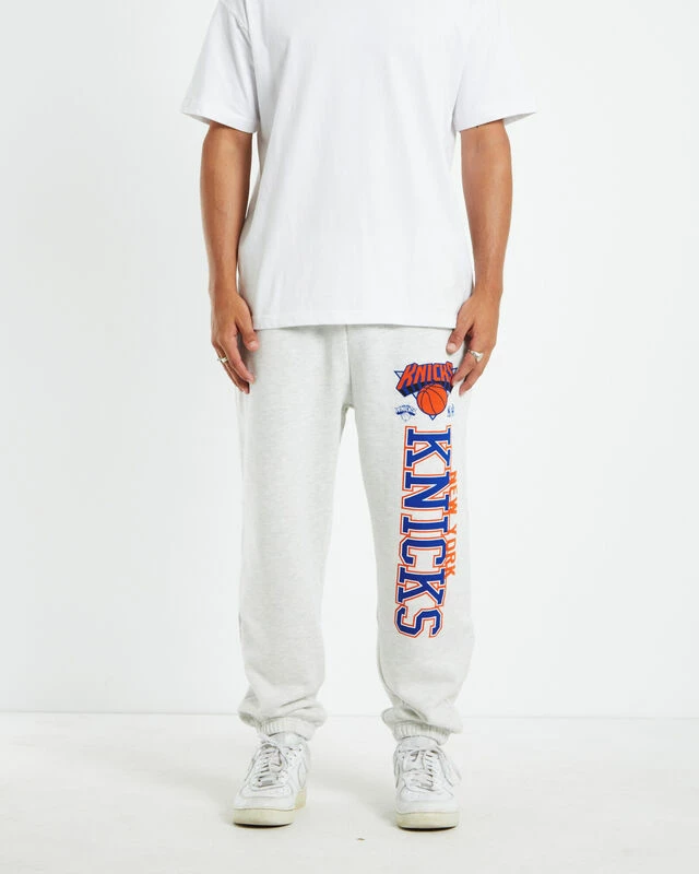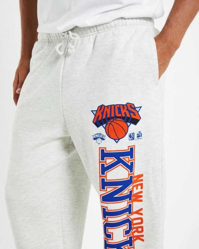 The New York Knicks Trackpants by Mitchell & Ness come in a silver marle colourway. The trackpants are crafted with a soft fleece interior and are designed with New York Knick’s branding on the left leg. Featuring a regular rise, elasticated drawstring waist, two slip pockets and single pocket at reverse. Pair it back with an oversized hoodie and a pair of converse to complete the look.