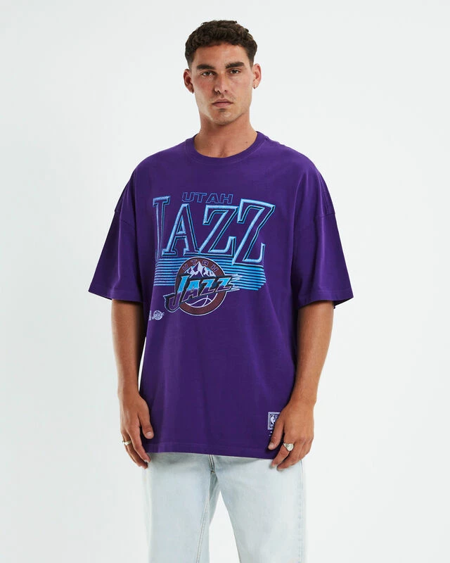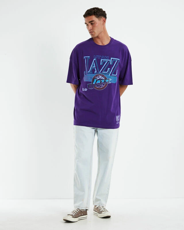 The Underscored Utah Jazz T-shirt by Mitchell & Ness is the perfect vintage inspired wardrobe essential. The piece comes in a faded purple colourway and features a vintage team print. Pair it with a pair of blue jean and converse to complete the look.