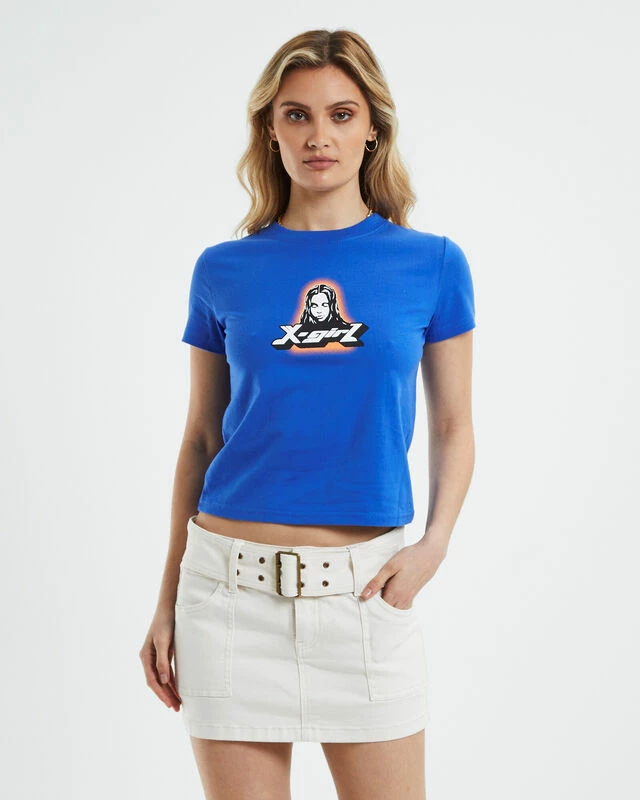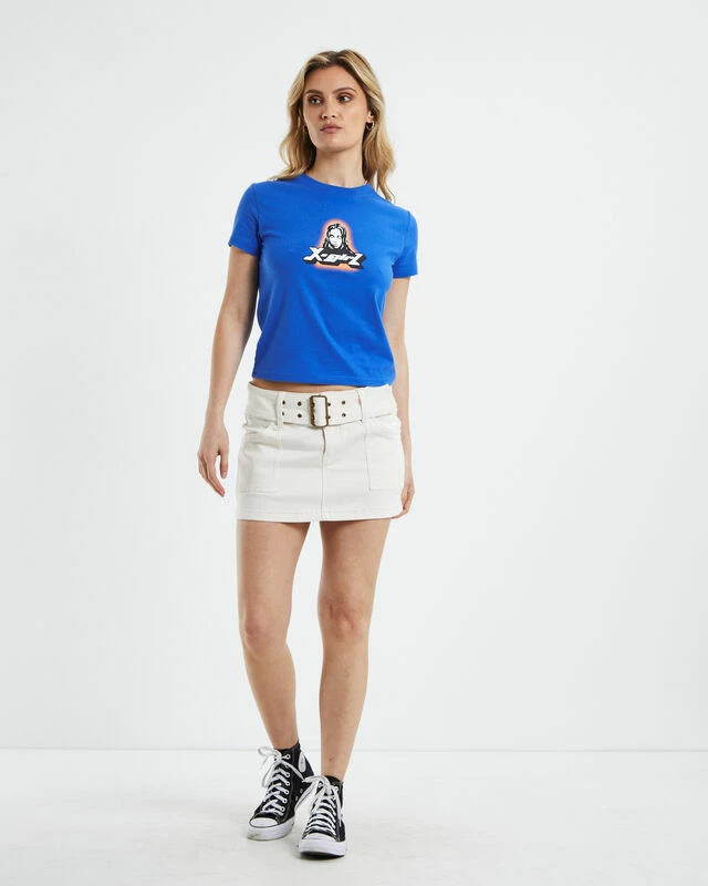 The New Age Regular T-Shirt by X-Large comes in a blue colourway with branded graphic at front. Designed with a slim fit, ribbed crew neckline, short sleeves and a straight hem. Pair back with a mini skirt and sneakers to complete the fit.