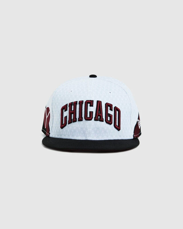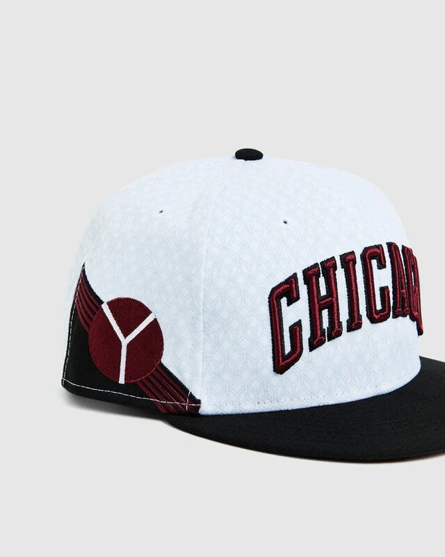 The 9Fifty Nbace Chicago Bulls Cap is in a white and black colourway with embroidery ‘Chicago’ logo. The hat is a cap style with a flat brim, signature branding and an adjustable rear.