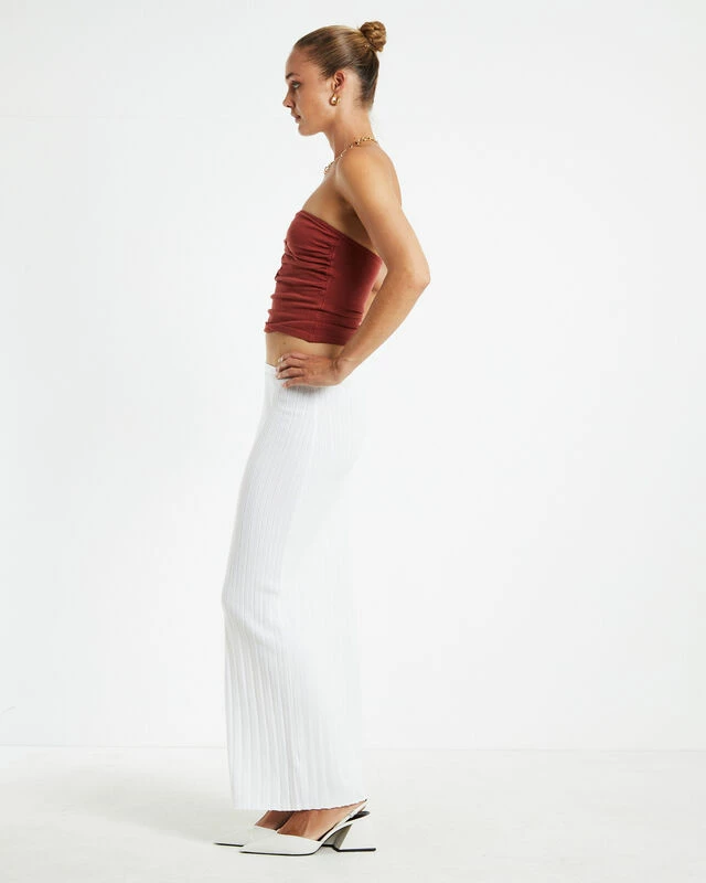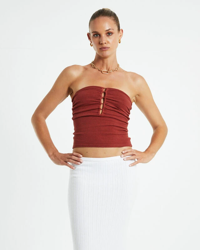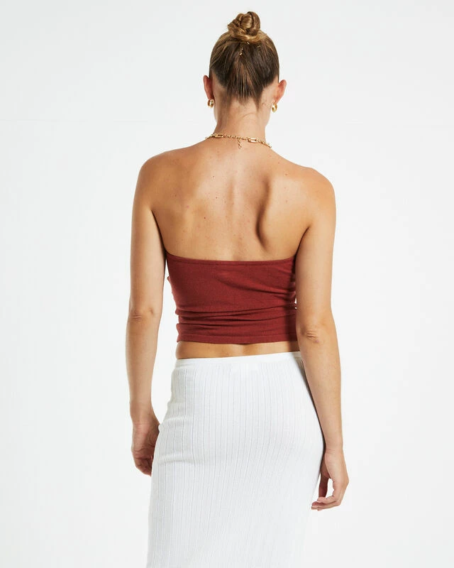 The Nora Knit Tube Top by Subtitled is crafted from a soft knitted fabrication and comes in a pink checkered pattern. This style is designed with a strapless silhouette and is a cropped fit.