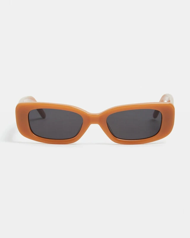 The Norm Sunglasses by Shevoke come in a deep tan colourway and are made from a thick acetate. The sunnies feature a rectangle shape, black lenses with 100% UV protection and gold branding on the inside of the arm.