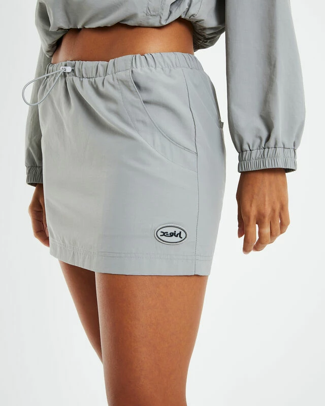 The Nylon Mini Skirt by X-Girl comes in a grey colourway. The skirt is crafted with a nylon fabrication, an adjustable, elastic drawstring, four pockets, branding detail on the bottom left and mini length. Make it a two-piece set with the Nylon 1/4 Zip Jumper.