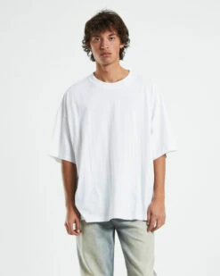 The OG Oversized T-Shirt by GP Co. Basics comes in a white colourway. This style is designed with an oversized fit, ribbed crew neckline, short sleeves and straight hem.