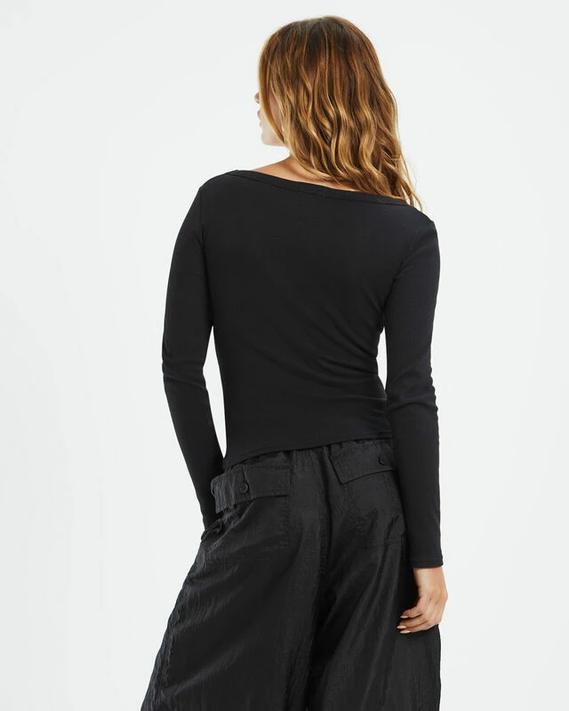 The Open Neck Long Sleeve Top by General Pants Co Basics comes in a black colourway. The top is constructed with open neck and long sleeves. Pair with an oversized blazer and platform Doc martens to complete the look.
