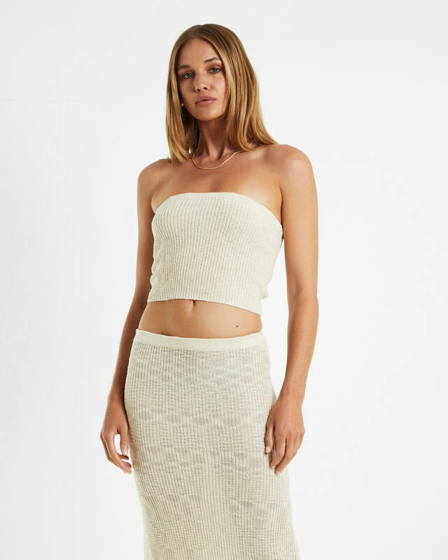 The Paige Boucle Knit Bandeau Top by Subtitled is constructed from a soft knitted fabrication and comes in a cream colourway. Featuring a strapless design and cropped fit. Style it with the matching Paige Boucle Knit top to complete the look. .