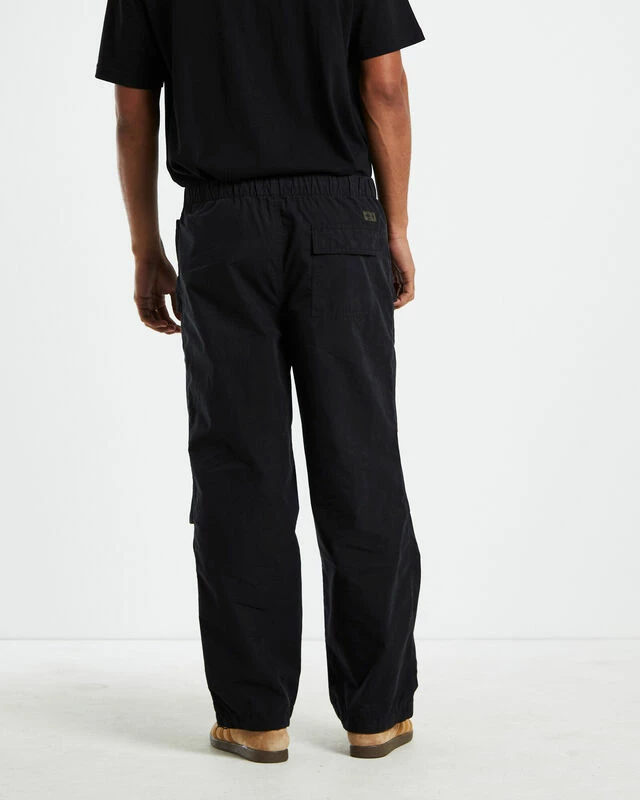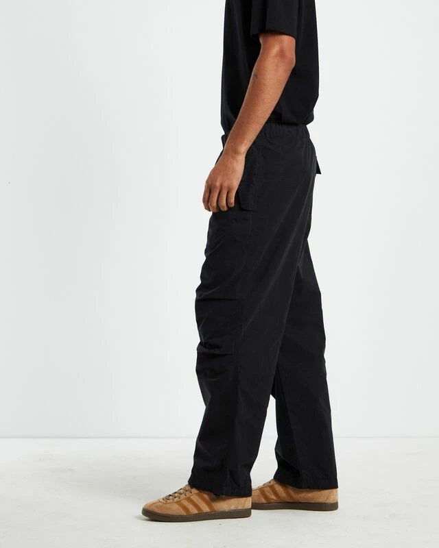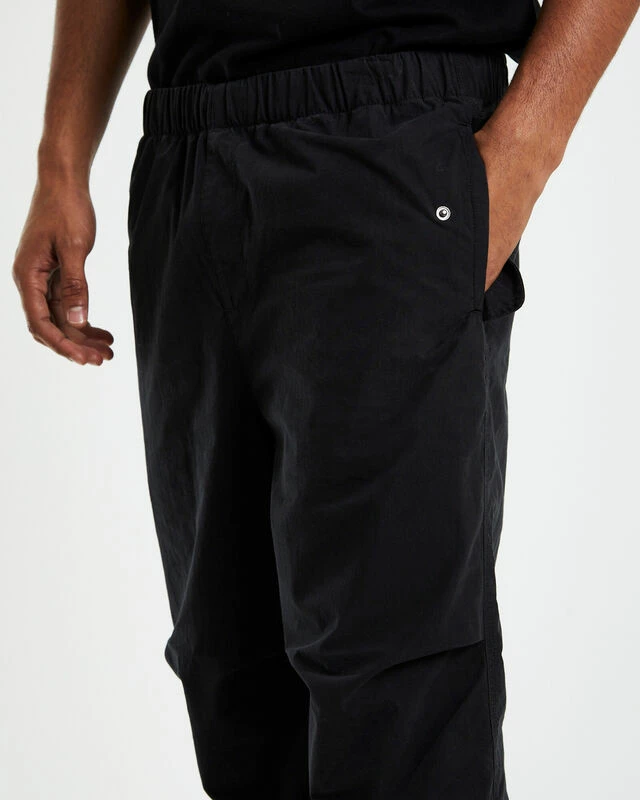 The Parachute Pants by Spencer project are a relaxed parachute style pant. This style is designed with an elasticated waitsband for added comfort, 3-pocket styling, woven brand tag at reverse and comes in a black colourway. Style back with a relaxed black t-shirt and sneakers for a more casual look.