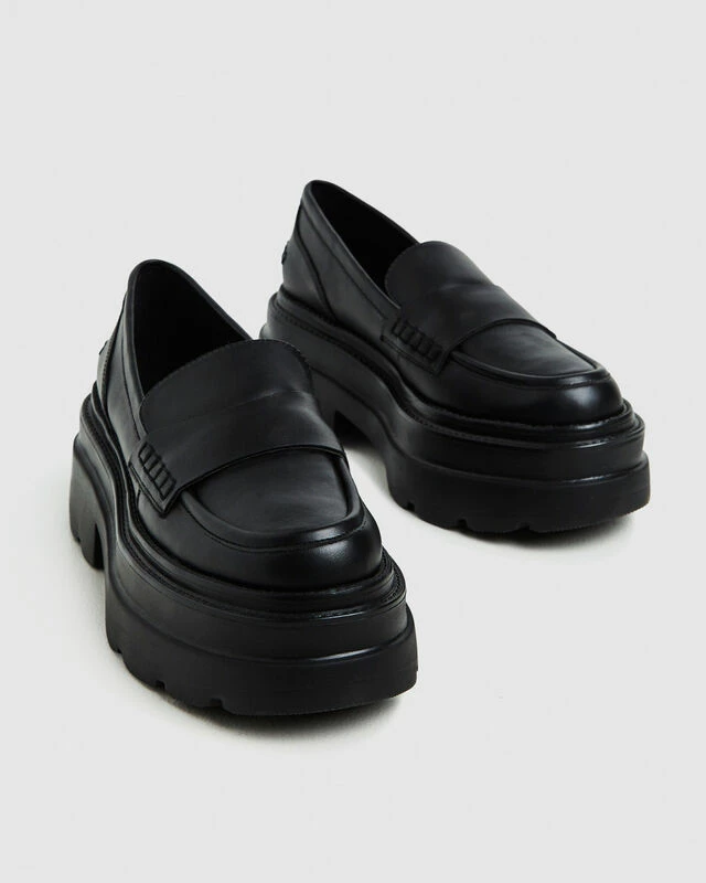 The Peyton by Alice In The Eve comes in a black colourway. The shoes feature a chunky sole, round toe and slight platform.