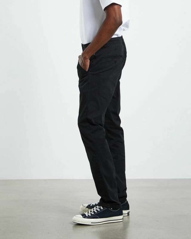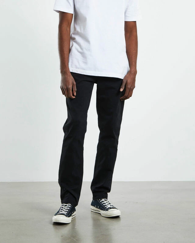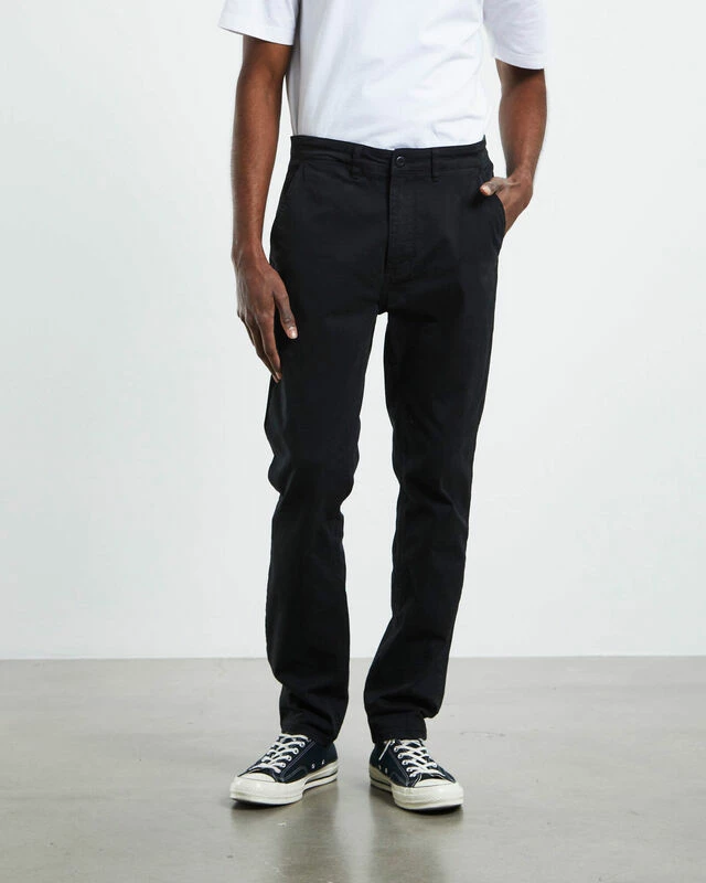 The Preston Chino Pants by Arvust are a full length, relaxed fitting chino pant that comes in a black colourway. The pants are a straight leg fit and feature four pockets, zip fly with button closure and belt loops. Keep it casual and style it back with an oversized tee and sneakers.
