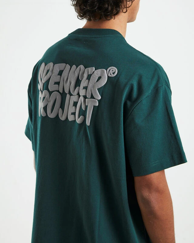 The Puffy Short Sleeve T-Shirt by Spencer Project comes in a pine green colourway and is crafted from a lightweight cotton fabrication. This style is designed with contrast puff print signature branding at the left chest and centre back, short sleeves, ribbed crew neckline and straight hem.