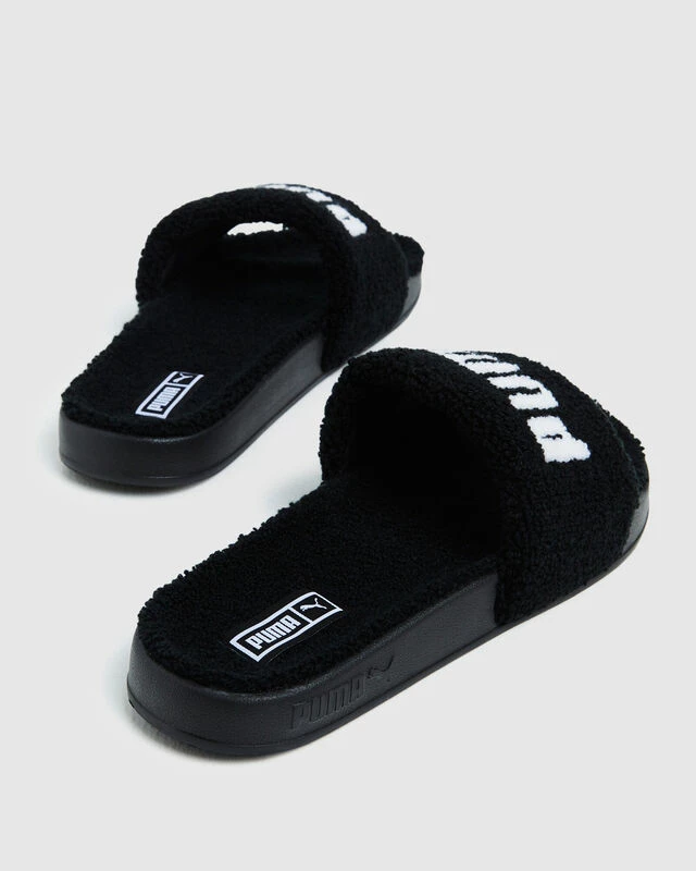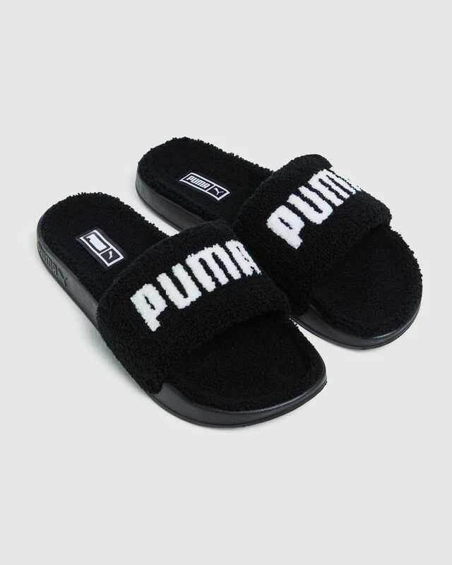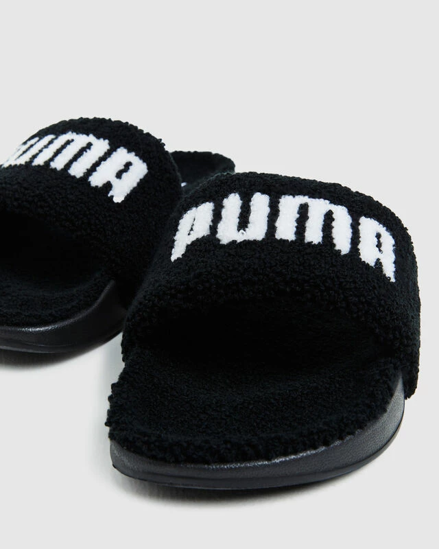 The Leadcat Sherpa Slides by Puma are a comfortable slip on style. The slides are a black and white colourway with signature branding. The shoes are a sherpa fabrication with a rubber sole.