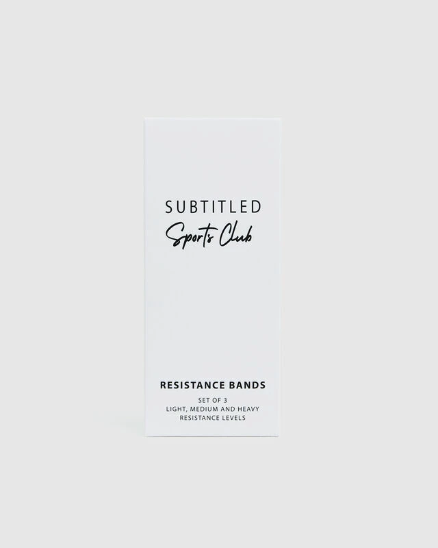 The Resistance Bands Subtitled Sports Club come in a pack of 3 blue assorted bands. The bands feature three different levels, light, medium and heavy.