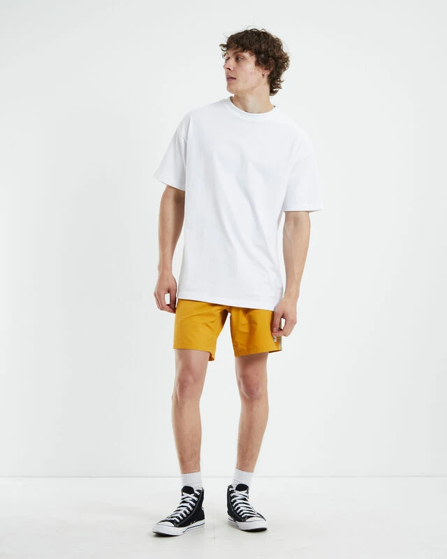 The Heritage 16.5″ Trunk Boardshorts by Rhythm are a relaxed fit shorts with a button fly and waistband drawstring. The boardshorts are a butter yellow colourway, featuring one rear pocket. For a relaxed vibe, pair it back with a white T-Shirt and Vans.