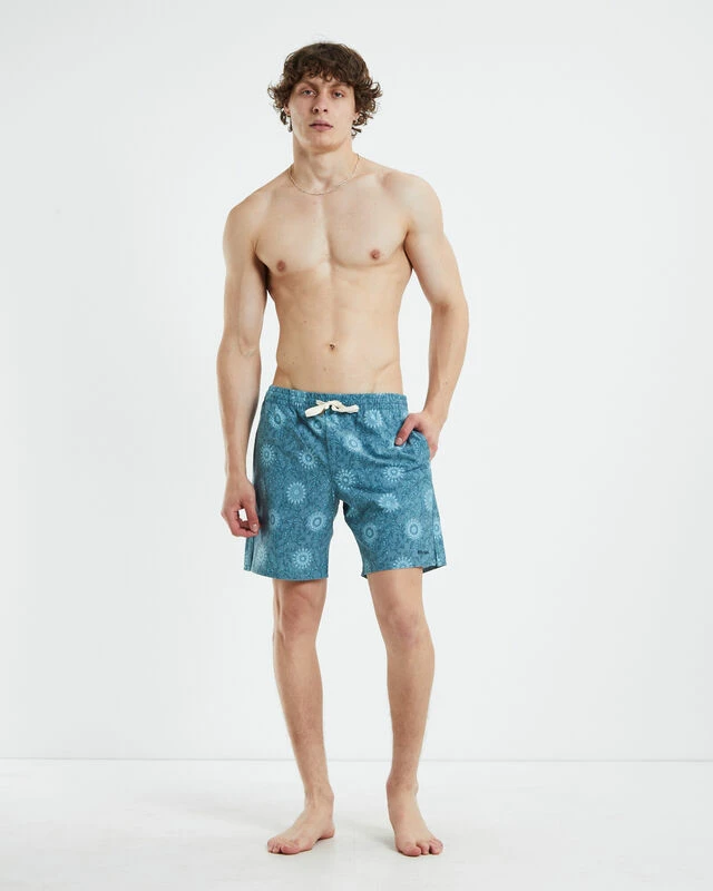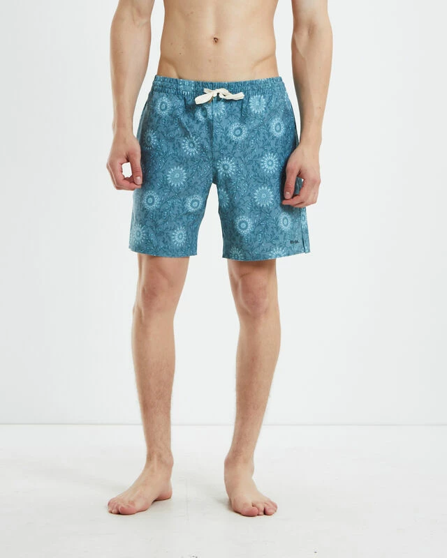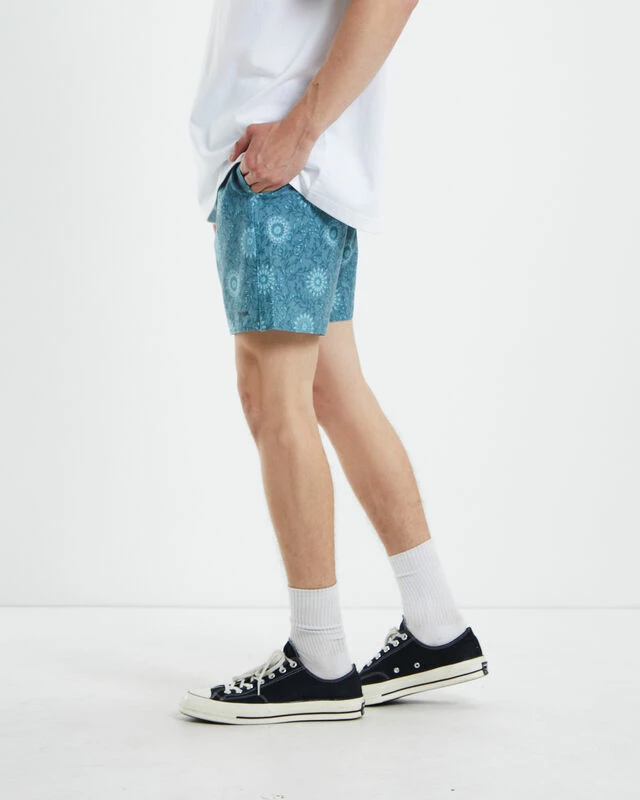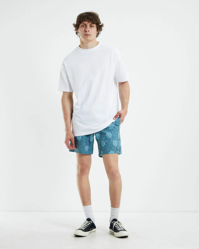 The Paloma Beach Shorts by Rhythm are a green colourway with a floral print design. The shorts feature an elasticated waistband with drawstring, three pockets and signature branding. Team with a black tee for an everyday look.