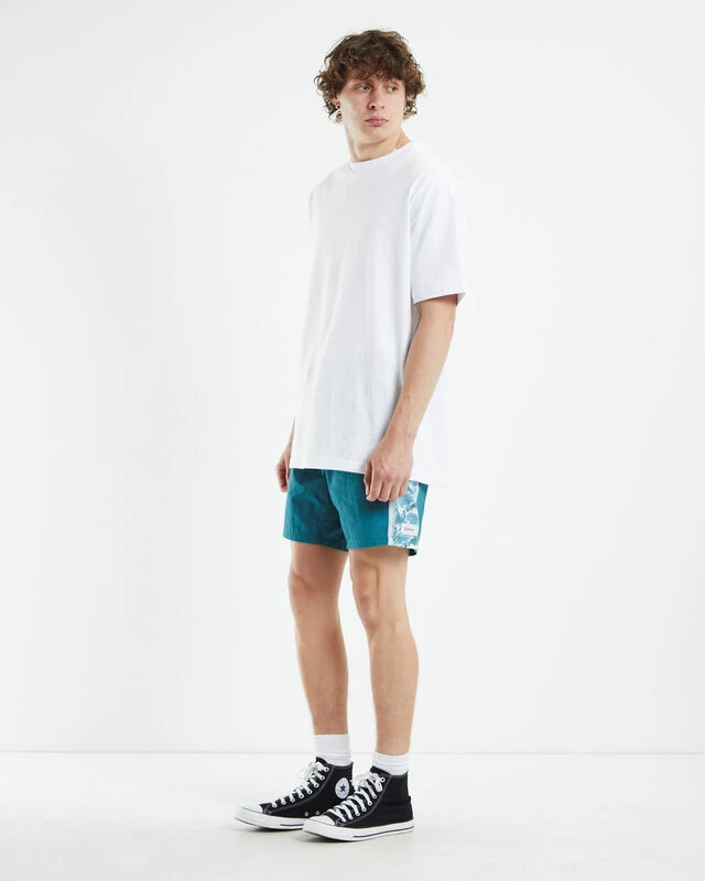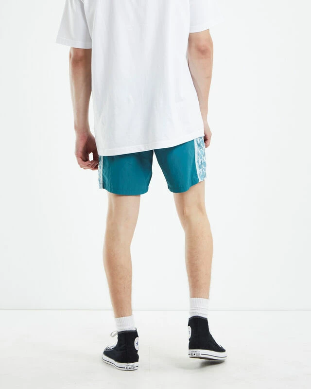 The Side Stripe Trunk Boardshorts by Rhythm are a teal colourway with two side panel prints. The boardshorts are a lightweight fabrication with a drawstring waistband and rear pocket. Pair it back with an oversized tee and slides for a casual summer day out.
