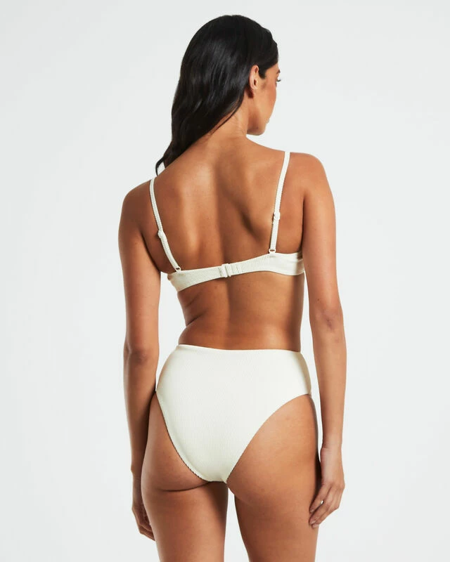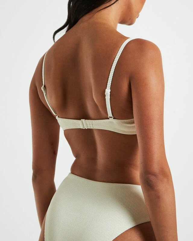 The Rib Cut Out Underwire Bikini Top by Subtitled comes in a almond white colourway. The top is designed with underwire cups and features adjustable shoulder straps, ribbed fabrication and a clasp closure at reverse. Mix and match our new season swimwear in a range of shapes and colours for different looks and styles.