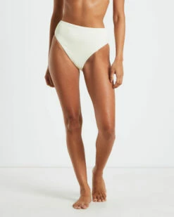 The Rib High Waisted Bottoms by Subtitled come in an almond colourway. The bottoms are a high-waisted design and are crafted from a premium ribbed fabrication. Featuring elongating high cut sides and moderate coverage. Mix and match our new season swimwear in a range of shapes and colours for different looks and styles.