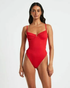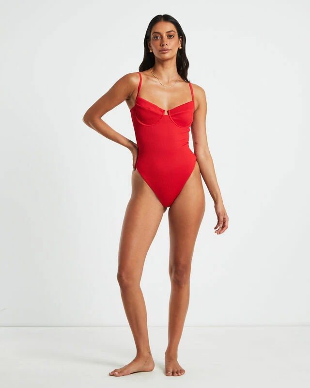 The Rib Underwire One Piece by Subtitled comes in a red colourway and is crafted from a premium ribbed fabrication. Featuring underwire cups, adjustable shoulder straps and a clasp closure reverse. Mix and match our new season swimwear in a range of shapes and colours for different looks and styles.