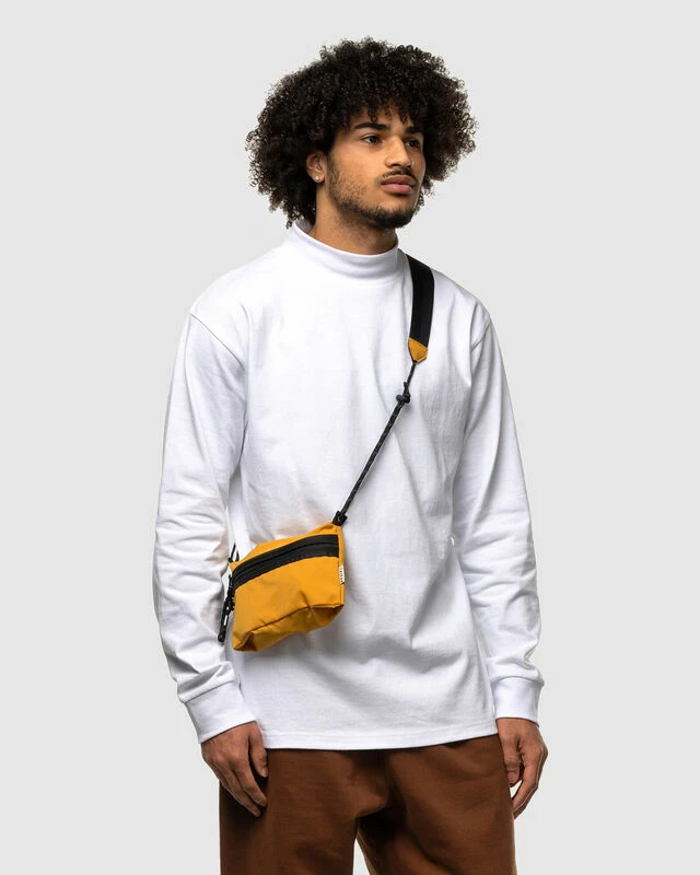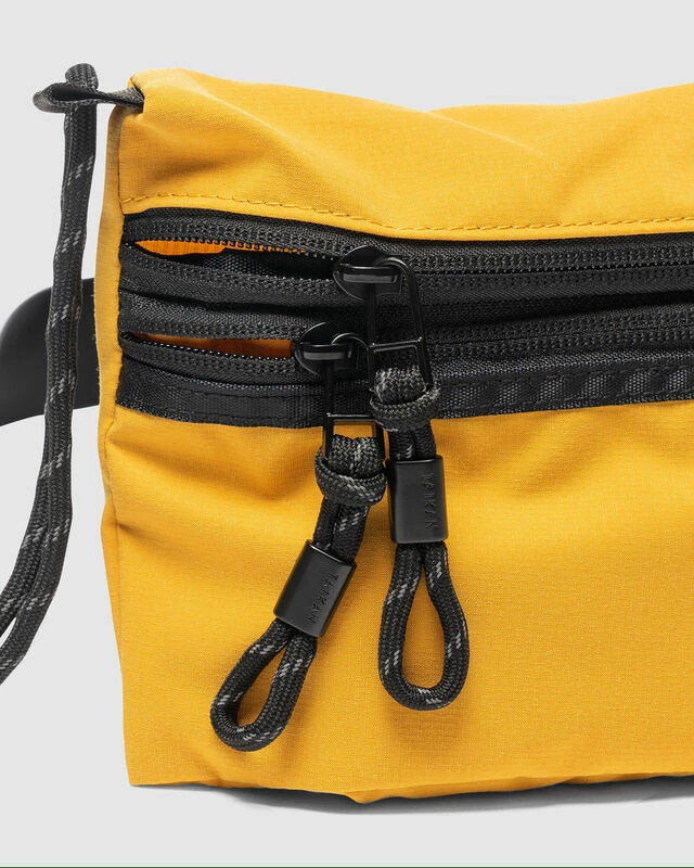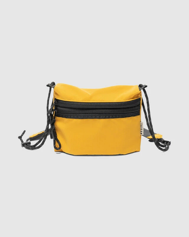The Sacoche Crossbody Bag by Taikan comes in a ripstop mustard yellow colourway and is designed with 100% nylon fabrication. The bag features a mesh external pocket, military spec nylon-webbing shoulder strap, adjustable length para-cord and matt black metal hardware.