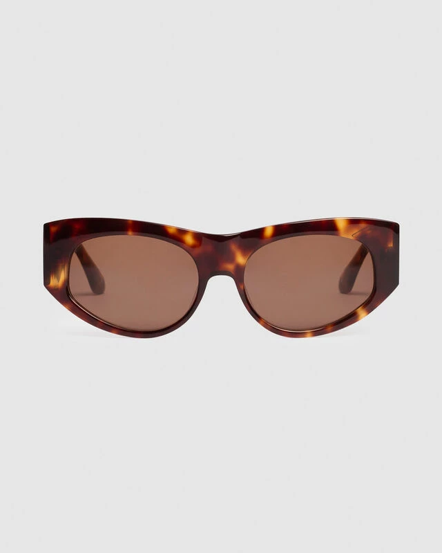 The Saint Sunglasses by Shevoke come in a brown tort colourway with signature gold branding detailing. This style features a thick acetate frame, oval shaped silhouette, comfortable nose bridge, gold hinges and 100% UV protection.