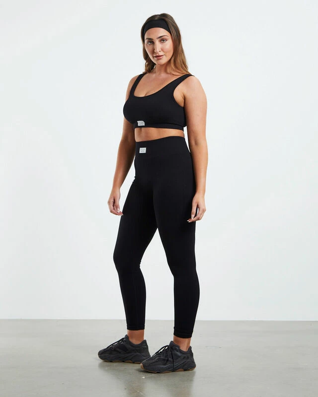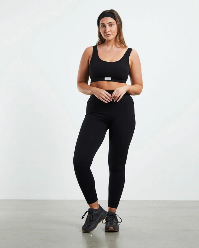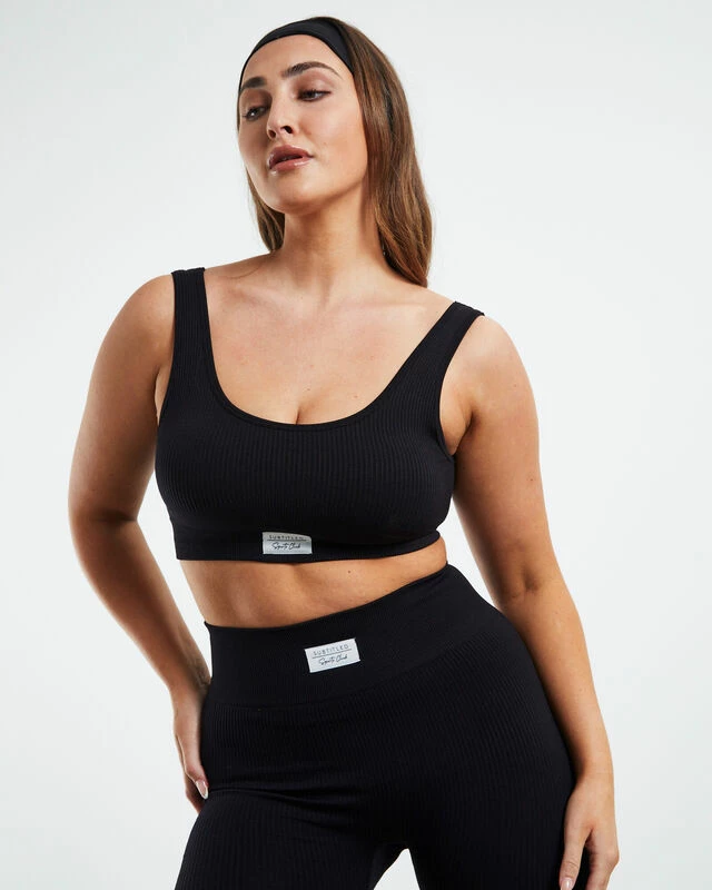 The Scoop Neck Sports Crop by Subtitled Sports Club comes in a black colourway is made from a ribbed recycled nylon blend. It is a seamless design and features a scooped neckline, thick shoulder straps, a woven brand patch under the bust and padding that can be easily removed. Swing over a cross-body bag and pop on your sunnies for an easy-going fit.