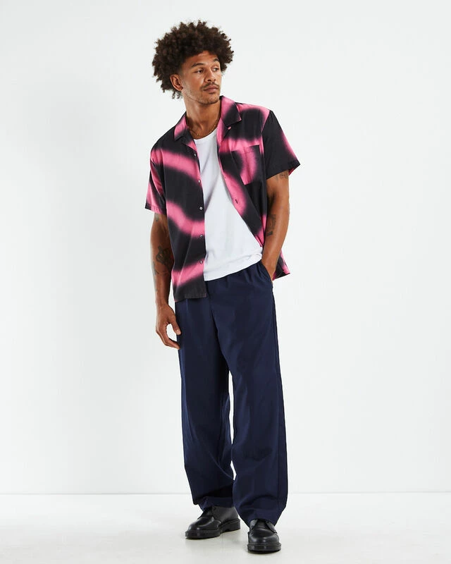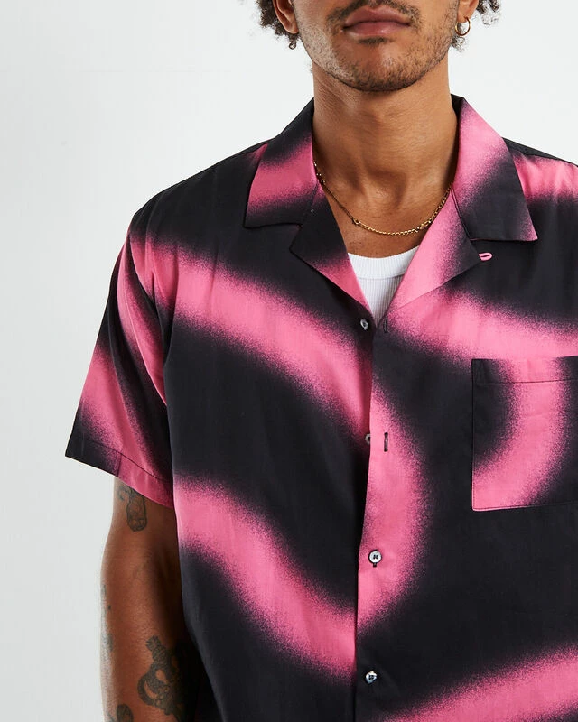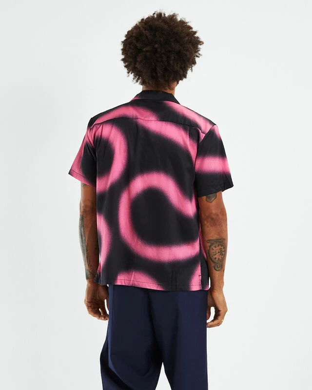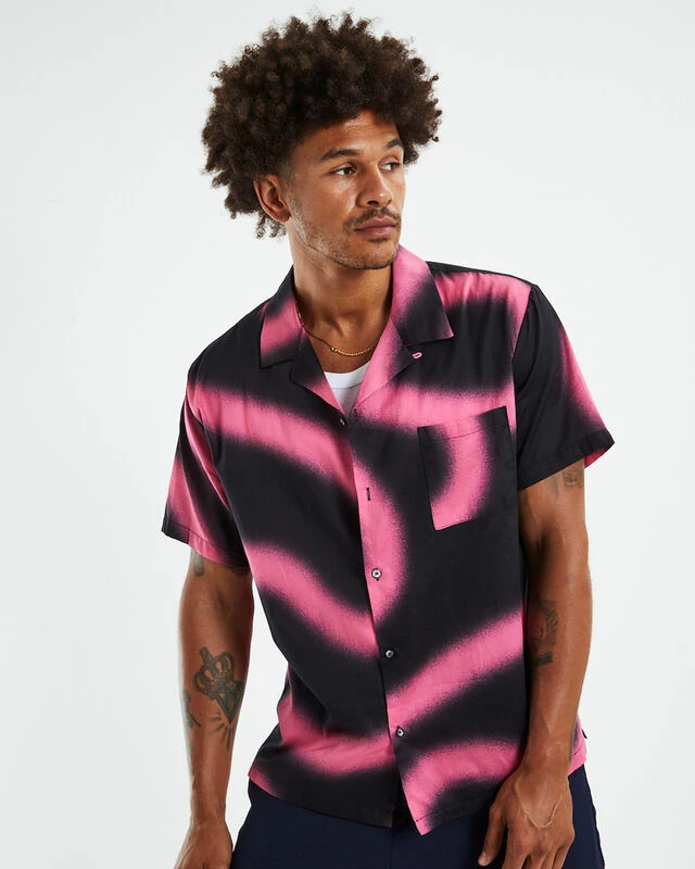 The Hawaiian Short Sleeve Shirt by Double Rainbouu is a amnesia pink colourway with an original digital print. The shirt is a regular fit with a button-up front, collared neckline and short sleeves. Throw it over a black singlet and black denim shorts this summer for a fun party look.