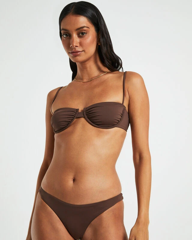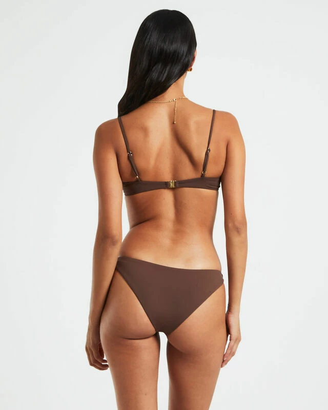 The Skinny Strap Underwire Top by Subtitled comes in a coffee brown colourway. The top is designed with underwire cups and features thin adjustable shoulder straps and a clasp closure at reverse. Mix and match our new season swimwear in a range of shapes and colours for different looks and styles.