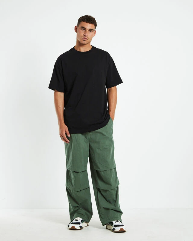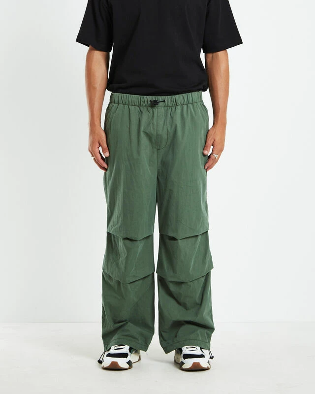 The Snow Pants by blacknøise/whiterain come in a fatigue green colourway and are a relaxed fit. The pants are designed with a adjustable toggle fastening on the legs and the waist. Featuring side pockets at the front and velcro pocket fastening on right side at back, elasticated waistband and branded label on left side. Wear these with a longline tee and chunky boots for an edgier vibe.