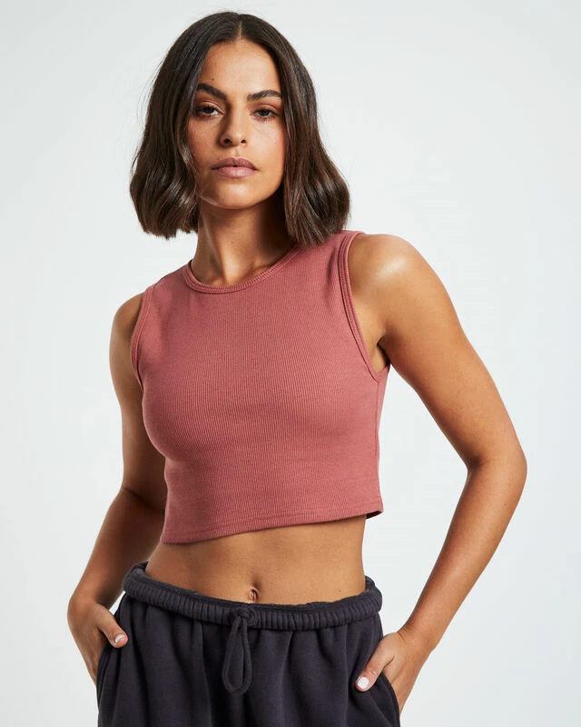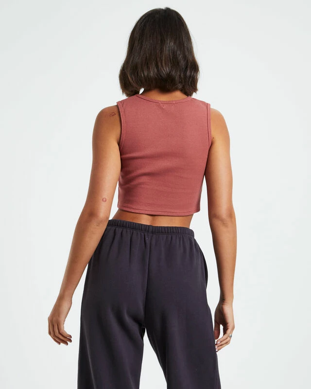 The Sports Rib Tank Top by General Pants Co. Basics is designed with a soft-touch ribbed cotton and comes in a brick red colourway. This piece is cropped and features a high crew neck. Style it back with oversized trackpants and Crocs for the ultimate lounge fit.