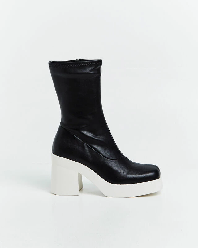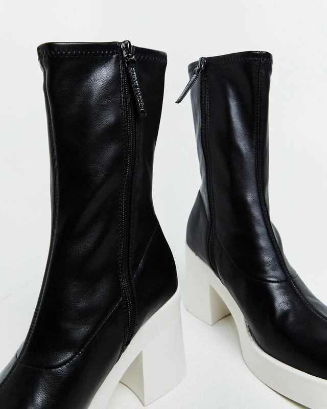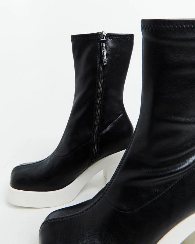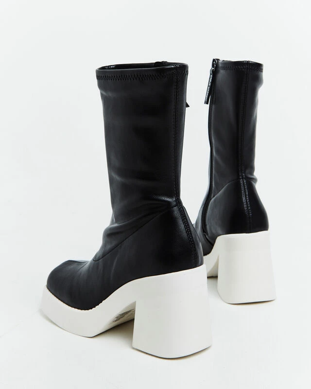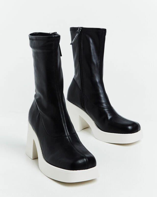 The Uptake Boots by Steve Madden are a 70’s inspired calf length design that comes in a black and white colourway. The boots feature a 2cm platform, a 7.5cm heel and a square toe design. Make these boots your statement piece when paired with a mini dress.