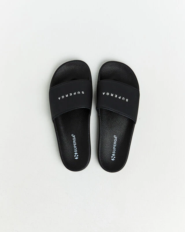 The 1908 Polysoft slides by Superga come in a black colourway. The slides are designed with a slim fit, rubber sole, polysoft upper and contrast signature branding.