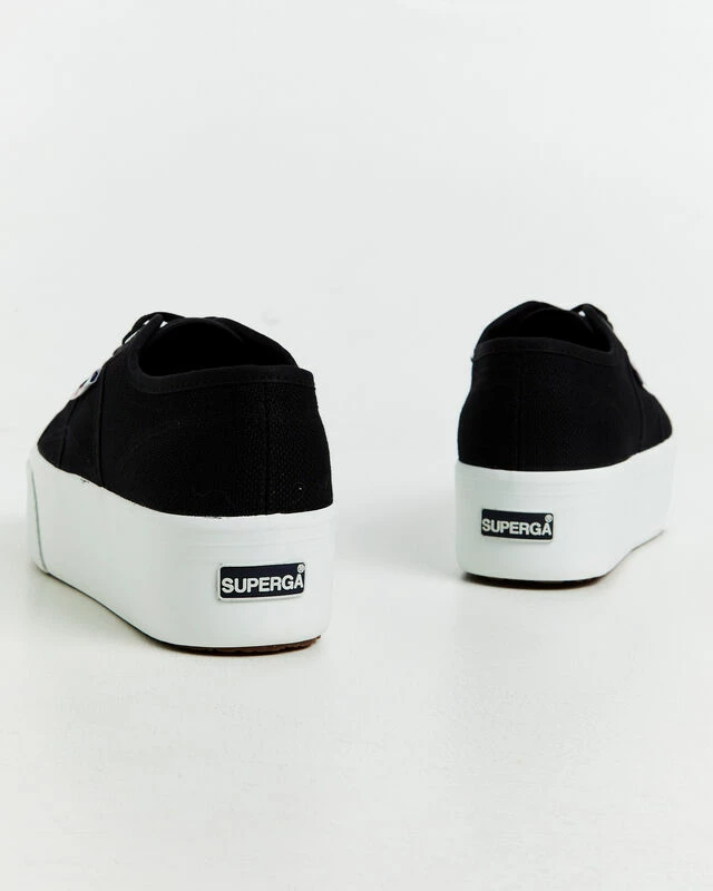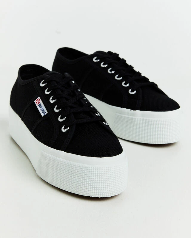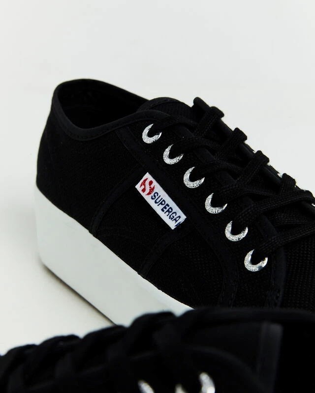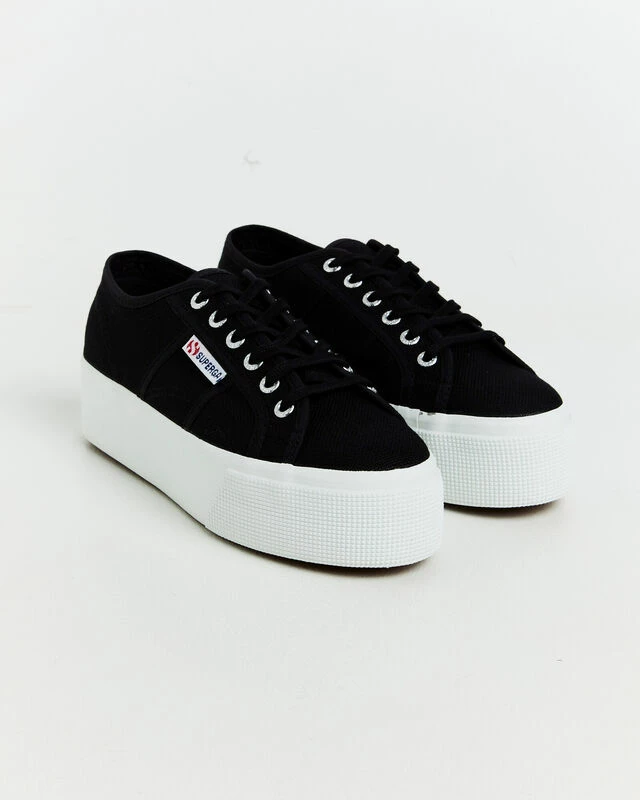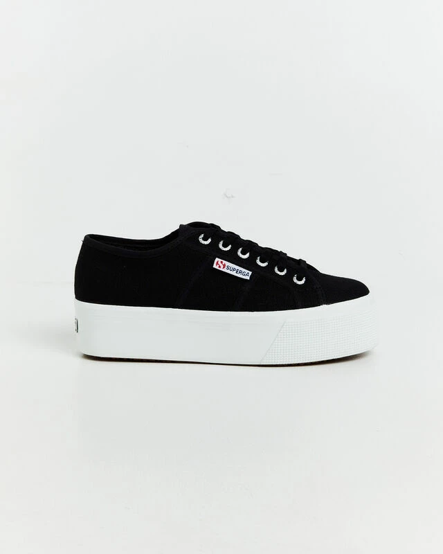 The 2790 Platform Sneakers by Superga are a staple sneaker that comes in a black colourway. The shoe is designed with a cotton canvas upper, white platform outsole, 6-eye lace up front and brand tag at the side.