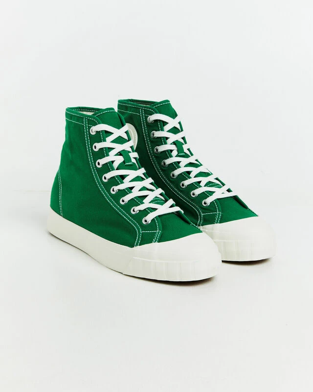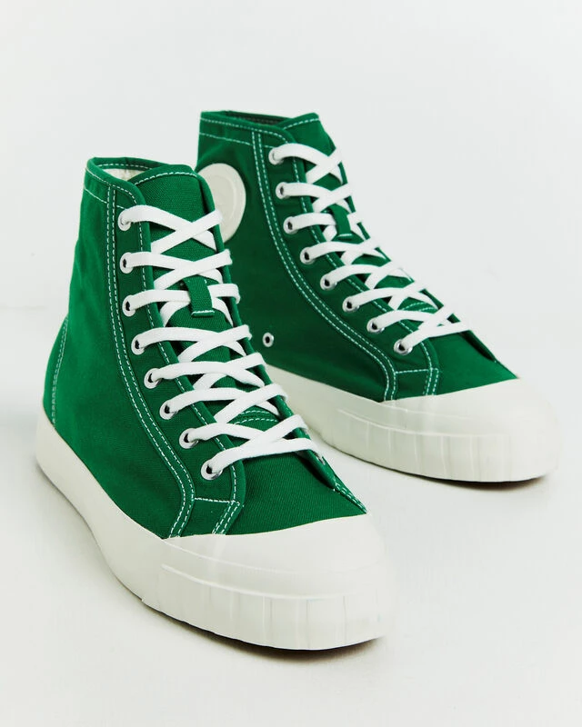 The 3192 Campionato Basket Sneakers by Superga come in an amazon green colourway featuring contrast white stitching. This style is designed with an 8-eye lace up design, high rise, rounded toe, contrast rubber sole and cotton upper. The sneakers also feature signature brand patches at the inner sides and heel.