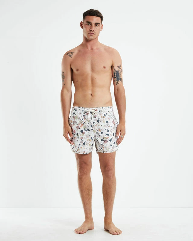 The Avalon 14″ Volley Boardshorts by Arvust come in a white colourway with contrast watercolor-like print. The shorts are designed with an elasticated drawstring waistband and feature a 14″ leg length, three pocket styling and signature branding. Pair it back with a white linen button-up shirt and connies for a fun summer look.