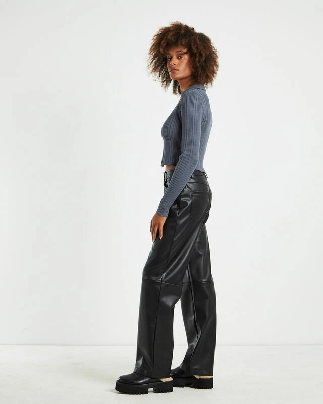 The Willow Hook Front Knit Long Sleeve Top by Subtitled comes in a slate grey colourway and is constructed from a ribbed knit fabrication. This style is designed with a deep v-neckline with collar detailing at the top, long sleeves, 3 hook clasp closure at the centre chest and ruffled hem. Pair back with black leather pants and slip on sandals for a casual day out.
