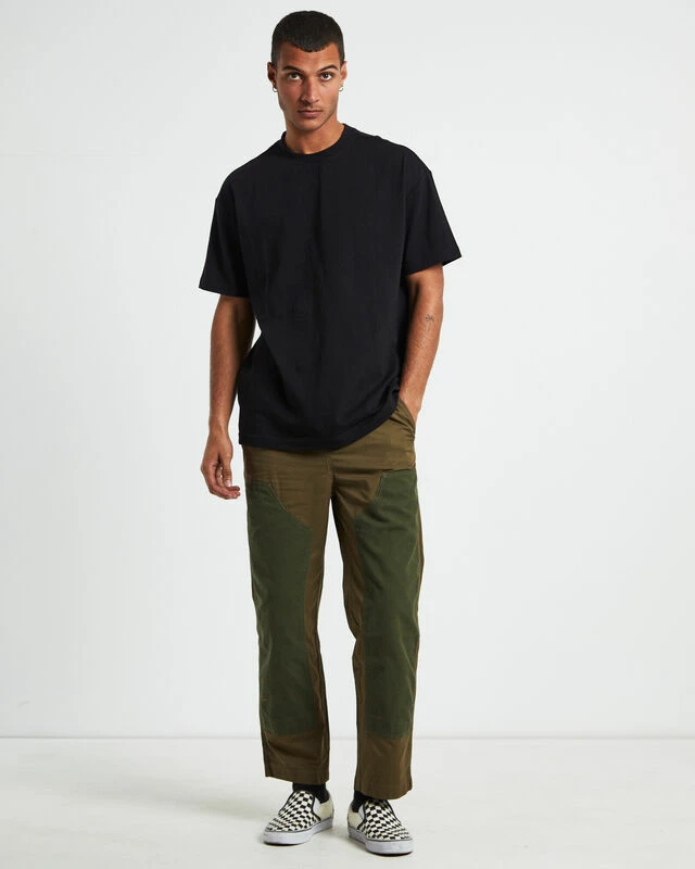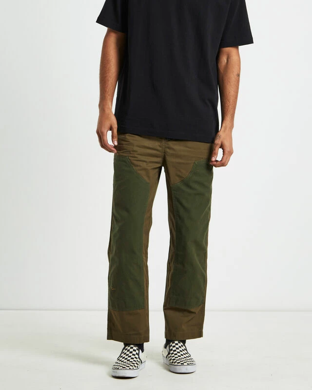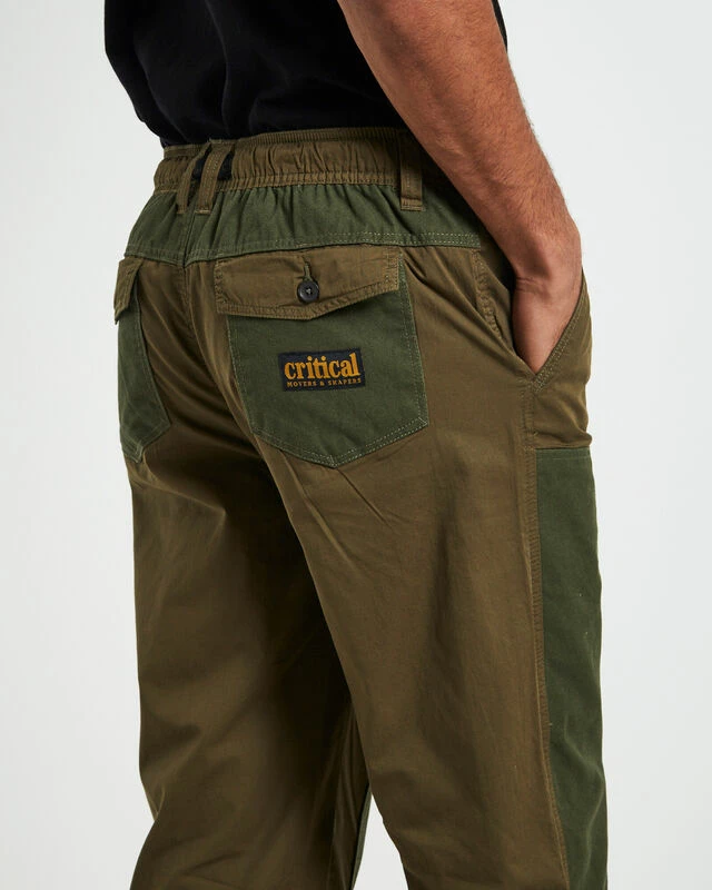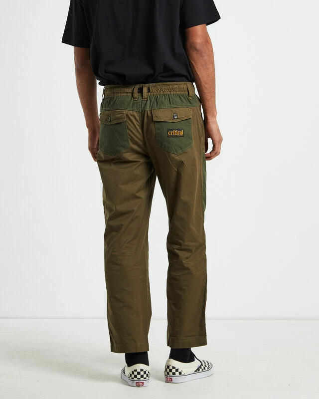The Worker Fatigue Pants by The Critical Slide Society comes in a brown and khaki colourway and features a slightly tapered leg. This style is designed with an elasticated waistband with adjustable waist, back pocket, and woven brand tags.